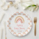 Este bonito y caprichoso plato presenta un arcoíris boho, un confetti y una decoración floral con pasto pampas en tonos beige, rosa y marrón neutros. El texto combina guiones manuscritos y sans serif para un estilo elegante y moderno. Es perfecto para una ducha de bebé en primavera o verano. Gráficos de www.etsy.com/uk/shop/SunflowerDayLove