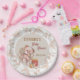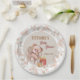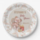 Casi demasiado tierno para comer, estos adorables platos de papel se pueden personalizar fácilmente con el nombre de la futura mamita y la fecha de su ducha de bebé antes de colocarlos en su carrito de compras. Cada una está bordeada por un diseño floral de bonito y en el centro hay un oso de peluche montado en una silla con regalos que esperan ser abiertos.