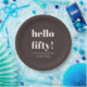 These personalized birthday paper plates feature bold modern typography on a deep brown background with soft ivory cream lettering for a cohesive, elevated party look. Perfect for 50th birthday celebrations, milestone parties, and adult birthday gatherings. Customize the name, date, and location to coordinate with your invitations, signage, and party decor. A practical table detail that adds style to the celebration while keeping cleanup easy.