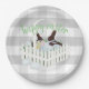 Este adorable plato de papel cuenta con una cesta de mimbre llena de huevos de Pascua y conejillos de pascua de chocolate sobre fondo de gingham gris. Personalízalo para tus necesidades. Puedes encontrar productos coincidentes en mi tienda.