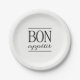 Conjunto de placas de fiesta de papel con una tipografía BON APPETIT en blanco y negro citan decoración de impresión de texto artístico. Artículos de mesa y accesorios de fiesta a juego disponibles.