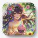 Plato De Papel Bonito Anime Chica con tarta Cumpleaños