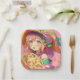 Platos de papel de cumpleaños del Fiesta Anime Pizza. Hermoso chica de Anime con colores pastel y pizza de pepperoni. Los colores utilizados son rosa, verde azulado, naranja, azul, violeta y azul. Ai art. generatvientent para niños, lindo y colorido