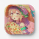 Plato De Papel Bonito Anime Chica llevando una pizza