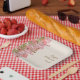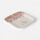 Platos de fiesta de papel fino creados con flores silvestres pintadas a mano en tonos rosas. Diseñado para coordinar con la colección de fiestas de 16 cumpleaños de flores silvestres. Arte original de Leslie Larson.
