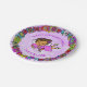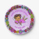 Platos de papel de bonito morado, afroamericano o hispano, para el Flower Border Birthday.