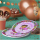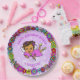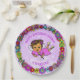 Platos de papel de bonito morado, afroamericano o hispano, para el Flower Border Birthday.