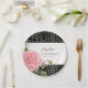 Diseño clásico y elegante de la valla de hierro con una peonía pintada a mano en rosa con toques amarillos de este elegante y sofisticado diseño artístico. Perfecto para lugares del sur de la Vintage que están llenos de encanto y elegancia. Puedes cambiar el color de fondo (que se muestra en negro) a cualquier color que quieras que coincida con tu ducha nupcial, ducha de pareja, cena de ensayo, fiesta de compromiso o eventos informales de recepción de bodas. La servilleta y la invitación completan la decoración. Audrey Jeanne Roberts, derechos reservados.