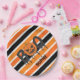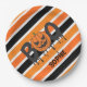 Plato De Papel Boo Halloween Naranja y franjas negras