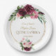 Plato De Papel Borgoña Rubor Floral Gold Mis Quince Quinceañera