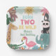 Little Girl Born Two Be Wild Paper Plate. This cute and whimsical safari and jungle themed plate features jungle and safari animals in a bohemian style for a little one's 2nd birthday. Coordinating invitations, signs, and other party decorations available.