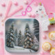 Estos platos fiestas Navidades presentan una escena de nieve del bosque llena de luces mágicas.