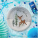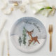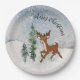 Feliz Navidad y feliz plato de papel de año nuevo con un alegre ciervo bebé corriendo en un hermoso fondo de bosque nevado de acuarela. Perfecto para la cena de los Navidades. Personalizar con tu mensaje personal para añadir un toque especial. Para una mayor personalización, haga clic en el enlace "Personalizar" y utilice nuestra herramienta de diseño para modificar esta plantilla.