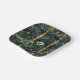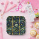 Este diseño presenta un bosque de color azul marino oscuro, negro, verde azulado, verde y dorado con árboles entrelazados que llegan al cielo, cada uno con un aspecto un poco parecido al árbol de la vida. El patrón se repite con un efecto de estilo de vidrio manchado, y la luna dorada shimmery se repite en cada panel. Los divisores dorados tipo desplazamiento separan cada panel. Tu inicial aparece en azul profundo contra una forma de diamante dorado que está rodeada de verde azulado.