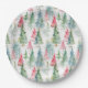 Plato De Papel Bosque, Pinos Verdes Rojo Fiesta