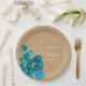 Las hojas frescas de eucalipto del bosque enmarcan sus nombres y fecha especial en un texto clásico y elegante, en este plato de papel de temática de boda campestre rústica natural. Diseñado por Thisisnotme©