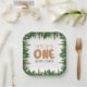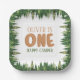 Plato De Papel Bosque verde de primer cumpleaños del Camper Feliz