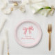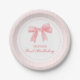 Plato De Papel Bow rosa y Stripes Coquette primer cumpleaños