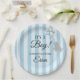 Adorable pastel blue baby shower paper plates, edit the text when ordering.