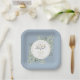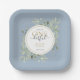 Pequeño Mr. ONEmaravilloso plato de papel de primer cumpleaños con elegante vegetación en un fondo azul chico y tipografía elegante. Diseñado por Thisisnotme©