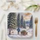 Plato De Papel Boy Pulling a Sled With Christmas Evergreen Boughs