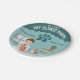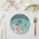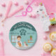 Add a playful touch to your little animal lover’s birthday with these boy veterinarian paper plates designed by Destei. The design features a cartoon veterinarian standing behind a gray examination table with a puppy and kitten, set against a teal animal clinic background. A large paw print above the illustration lets you add the child’s age, making each plate fun, personal and perfectly themed. Ideal for kids’ veterinarian-themed birthday parties, these plates bring color, personality and a festive vibe to any celebration.