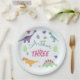 Este diseño de placas de papel para niños de 3 años presenta personalizados de dinosaurios de jungla azul pastel, con un t-rex, estegosaurus, arcos y plantas de jungla jurásica, y puede ser personalizado con un nombre y una edad. La perfecta adición al evento de cumpleaños de tu bebé con tema de dinosaurios.