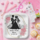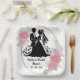 Una Placa De Papel Cuadrado De Novias Para Las Duchas De Novias Diseñadas Con Pareja Boda Rodeada De Marco Dorado Con Rosas Rosa Rosa Que Se Puede Personalizar