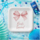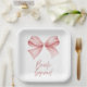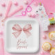 Este diseño presenta una estética suave y elegante. En la parte superior, hay una delicada proa de acuarela en un rosa mullido. Debajo de la proa, la frase "Bride Squad" está escrita en un elegante y fluido tipo de letra de guión, coloreado con un tono ligeramente oscuro de rosa que complementa el arco. El conjunto es limpio, encantador y elegante, lo que lo convierte en un gran accesorio para una fiesta nupcial. Sería perfecto para las damas de honor.