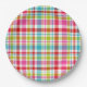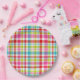 Plato De Papel Bright Rainbow Plaid Checkered Pattern