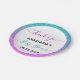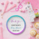 Colorido y luminoso plato de papel de "agradecimiento" para una ducha de bebé con un borde oscuro de rosa/ azul/ turquesa/ agua/ lila/ purpurina púrpura. Personalice añadiendo su propio texto, nombre y fecha de la ducha de bebé. Incluso puede cambiar el color de texto y el estilo de fuente mediante la opción personalizar.