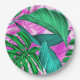 Plato De Papel Brillantes hojas rosadas y verdes tropicales