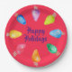 Luminosas Navidades Bulbs Happy Holidays Paper Plate - Un plato de papel de colores vivos para servir dulces festivos durante las vacaciones. Incluso puede cambiar el texto y el tipo de letra. El texto se puede cambiar a una placa de regalo o de compartición y se pueden dar cookies a los vecinos. ¡Genial para fiestas Navidades!