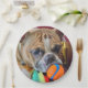 Estos platos de papel muestran un lindo romano le Boston Terrier esperando para jugar al balón.