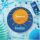 Tipografía de brisa veraniega en blanco y azul cielo. Sol naranja amarillo pintado a mano. Fondo azul profundo. Diseño original de obras de arte de TamiraZDesigns.