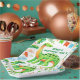Este diseño de dinosaurios de cumpleaños conjunto presenta un brontosauro de cuello largo en verde y naranja rodeado de follaje y serpentines. Todos los ilustraciones están pintados a mano en un crayón acuarela. Este diseño tiene espacio para dos nombres para una celebración de cumpleaños combinada o puede editarlo para un solo nombre. Vea toda la colección coincidente.