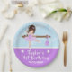 Plato De Papel Brown Hair Ballerina Purple Tutu Papel de cumpleañ