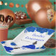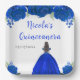 This Quinceanera plate features faux glitter royal blue floral flowers and a beautiful princess with brown hair and an elegant dress. This is perfect for a Quinceanera birthday party.