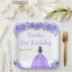 This birthday party plate features faux glitter purple floral flowers and a beautiful princess with brown hair and an elegant dress. This is perfect for a birthday party.