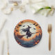 Plato De Papel Bruja en un palo de la luna con murciélagos