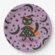Plato De Papel Bruja Gato Negro Luna Morada Estrellas Fiesta de H