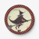 Plato De Papel Bruja linda en la placa de papel de la escoba
