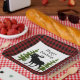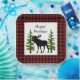 Este rústico plato de papel de color rojo y negro, diseñado en forma de guarnición de búfalo, tiene un alce y dos abetos. Hay un saludo de Cumpleaños Feliz que puedes guardar o editar para agregar tu propio texto.
