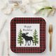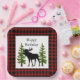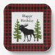 Plato De Papel Búfalo Rojo Rústico con cumpleaños de alce