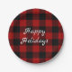 Plato De Papel Búfalo rojo y negro Felices Fiestas
