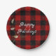 Plato De Papel Búfalo rojo y negro Felices fiestas en la nieve