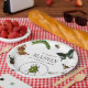 This cute and vintage "we're bugging out" boy's birthday birthday paper plate features a magnifying glass, bugs and insects such as butterflies, a bee, beetle, worm/larva, and dragonfly on a white background. Personalize it for your needs. You can find more matching products at my store.