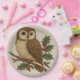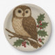 Plato De Papel búho de Navidades de bordado con holly rustic