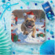 Un alegre Bulldog francés recorre alegremente la nevada escena invernal, con un gorra de Navidades rojos festivo. Este encantador diseño destaca la robusta construcción de la raza, su expresiva cara y su cariñosa naturaleza, mientras captura la alegría y la magia de la temporada de vacaciones. Un alegre momento invernal lleno de encanto festivo.