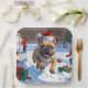 Plato De Papel Bulldog francés postula en nieve con Gorra Navidad